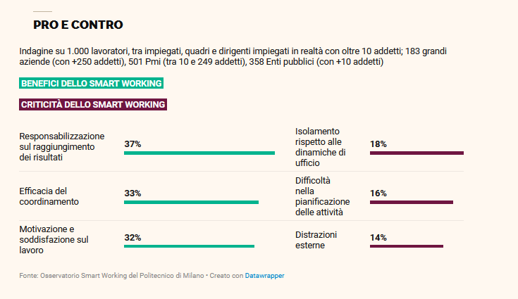Fonte: Osservatorio Smart Working del Politecnico di Milano e creato con Datawrapper su il Sole 24 Ore